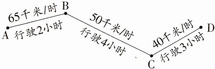 5. 张叔叔从A城到D城平均每小时行多少千米?
