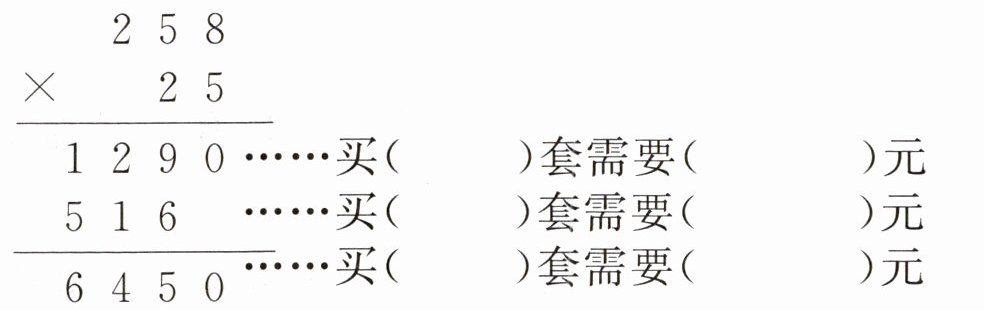 (1)如果买25套第一种图书,一共需要多少钱? 在下面括号里填上合适的数。