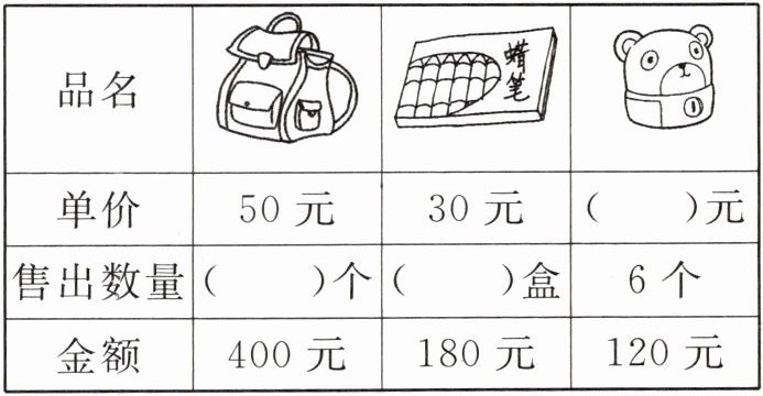 1. 文具商店某天部分文具用品的销售情况见下表,请你把表格补充完整。