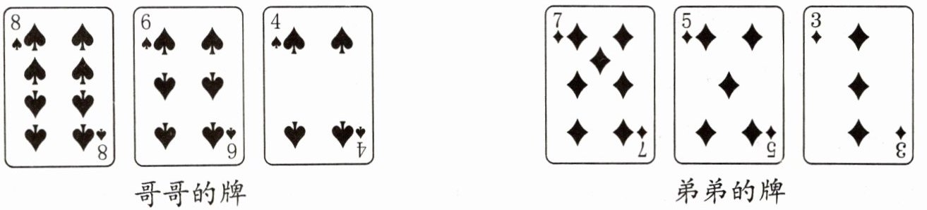 9. 哥哥和弟弟玩扑克牌比大小的游戏,每人3张牌(如下图所示),每人每次出1张牌,各出三次,赢两次者胜。每次都是哥哥先出牌,哥哥第一次出的牌是8,弟弟第一次出的牌必须是(