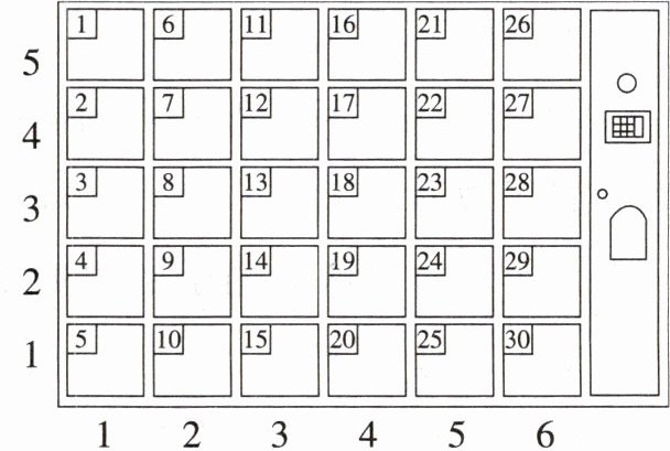 (2) 快递员把一个包裹存放在 25 号柜中,用数对表示它的位置是( , )。