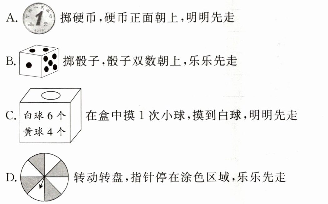 5. 明明和乐乐玩飞行棋游戏,下面决定谁先走的方法中,不公平的是()。