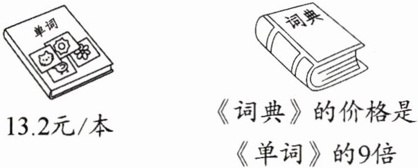 已知《单词》价格为$13.2$元/本,《词典》价格是《单词》的$9$倍,所以《词典》价格为$13.2×9 = 118.8$元。