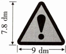 已知该三角形标志牌的底$a = 9dm$,高$h = 7.8dm$,将其代入公式可得: