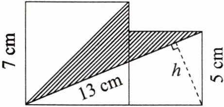 (2)已知阴影部分图形的一条边长为 $13cm$,那么图中三角形的高约多少厘米?(得数保留两位小数)