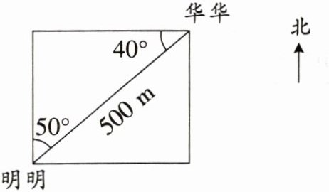 (2)华华在明明( )偏( )( )°方向上,距离是( )m,观测点在( )处。
