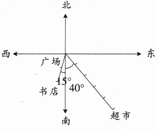 (2)超市在广场( )偏( )( )°方向上,距离是( )m。