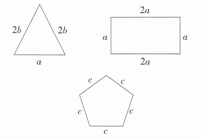 5. 如下图所示,已知三个图形的周长相等,则$a:b:c= $______。
