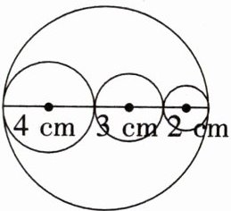 4. 在一个大圆里,以它的直径上的三个点为圆心,画出三个紧密相连的圆(见下图)。比较大圆的周长与这三个小圆的周长之和,你有什么发现? 请计算说明。