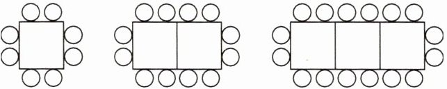 1张桌子坐8人,2张桌子坐12人,3张桌子坐16人。规律:每多1张桌子多坐4人,n张桌子可坐人数为4n+4。