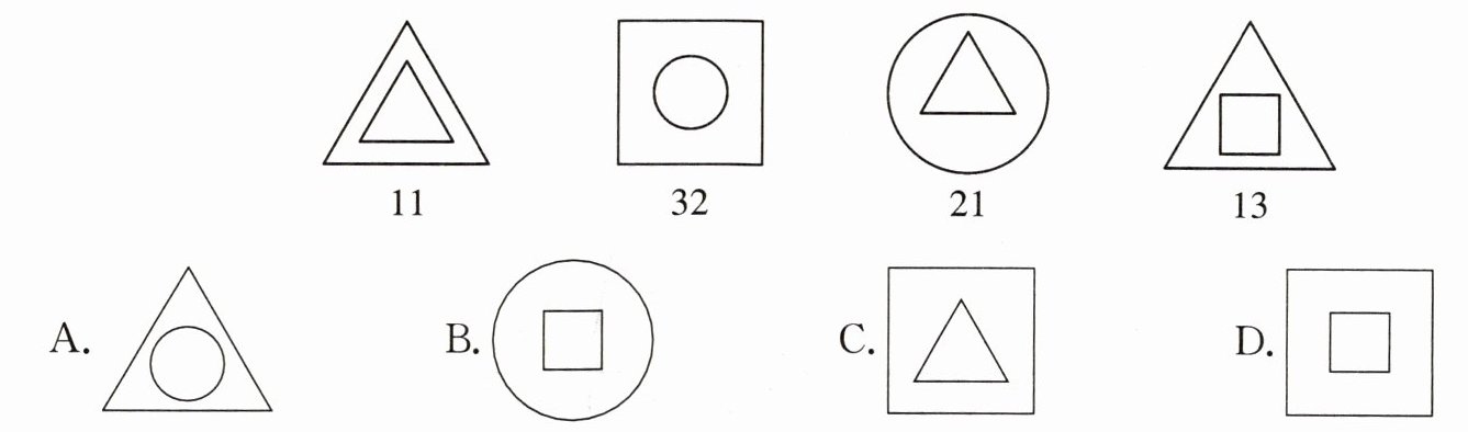 8. 下面每一个图形都是由△、□、○中的两个图形组成的,观察各个图形,根据图形下面的数找出规律。下面选项中表示“23”的图形是( )。