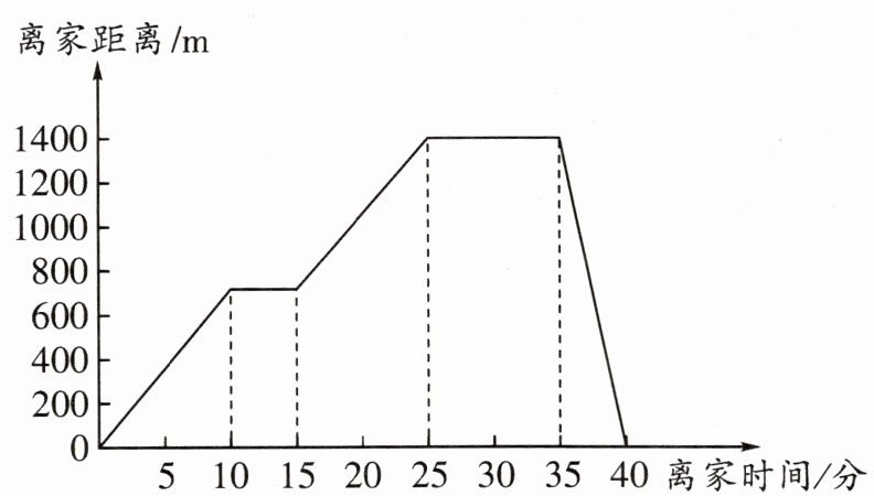 (1) 小亮去图书馆步行阶段为0-10分钟和15-25分钟,10-15分钟为停留。10-0=10(分钟),25-15=10(分钟),10+10=20(分钟)。