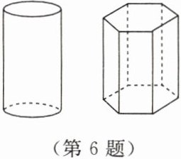 6. 如图所示,左边是小颖的圆柱形笔筒,右边是小彬的六棱柱形笔筒。观察两个笔筒,并回答下列问题。