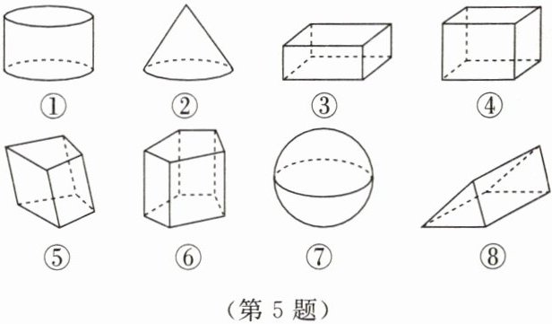 5. 请将下图中的几何体进行分类,并说明分类的依据。