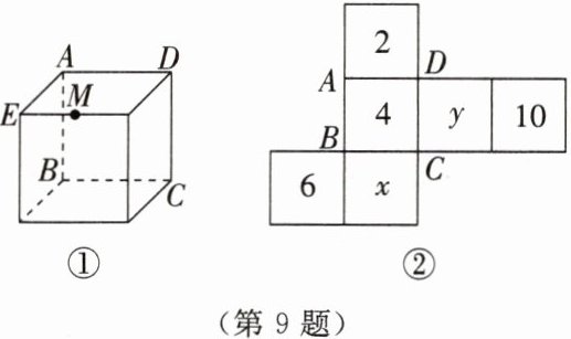 9. 如图所示,图①为一个棱长为8的正方体,图②为图①的表面展开图(数字和字母写在外表面上,字母也可以表示数),请根据要求解答下列问题。
