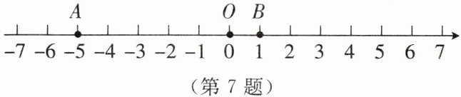 7. 已知数轴上$A$,$O$,$B$三点对应的数分别为$-5$,$0$,$1$,点$M$为数轴上任意一点,其对应的数为$x$。