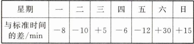 6. 为落实“双减”政策要求,学校对课后作业时长进行了科学调控。小明记录了本星期写课后作业的时间,数据如下表所示(以 60 min 为标准,时间多于 60 min 用正数表示,时间少于 60 min 用负数表示):