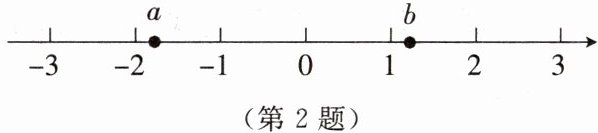 2. 有理数$a$,$b$在数轴上的对应点的位置如图所示。用“$<$”或“$>$”填空:$a$