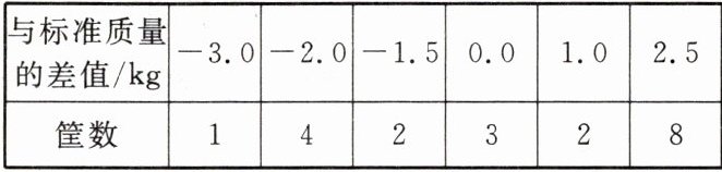 答:与标准质量相比,这20筐白菜的总质量超过8 kg。