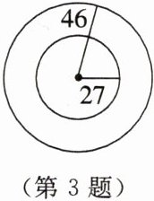 3. 如图所示,已知圆环的外圆半径为$46\mathrm{mm}$,内圆半径为$27\mathrm{mm}$,利用计算器求圆环的面积($\pi$取$3.14$)。