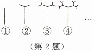 2. 下图是按照一定规律画出的“树形图”,经观察可以发现:图①有 1 个“树枝”,图②有 3 个“树枝”,图③有 7 个“树枝”……照此规律,图⑥有