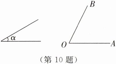 求作:以$OA$为一边,在$\angle AOB$的内部作$\angle AOC=\angle\alpha$。(要求:尺规作图,不写作法,保留作图痕迹)