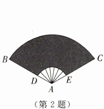 2. 如图所示,扇形纸折扇完全打开后,扇形 $ BAC $ 的面积为 $ 300\pi \, cm^2 $,$ \angle BAC = 120^{\circ} $,$ BD = 2AD $,则 $ BD $ 的长度为