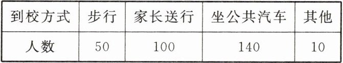 3. 数学兴趣学习小组的成员对本校七年级全体学生每天的到校方式进行了一次调查,调查的数据见下表: