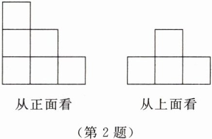 2. 用若干个大小相同的小立方块搭一个几何体,使它从正面、上面看到的形状图如图所示。搭这个几何体最多需要