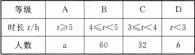 收集整理数据:按照标准,学生每周劳动时长分为A,B,C,D四个等级,数学兴趣小组随机抽取学校部分学生进行调查,绘制成下面不完整的统计图表。