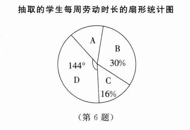 6. 《大中小学劳动教育指导纲要(试行)》要求初中阶段每周劳动时长不少于3小时。某校为了解该校学生每周劳动时长,组织数学兴趣小组按下列步骤开展统计活动。