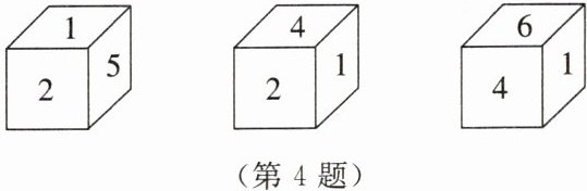 4. 正方体木块的六个面分别标有数字1,2,3,4,5,6,从不同方向观察这个正方体木块,看到的数字情况如图所示,则数字1和5对面的数字分别是