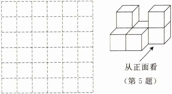 5. 由7个大小相同的小立方块搭成的几何体如图所示,请画出从正面、左面、上面看到的这个几何体的形状图。