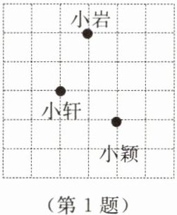 1. 下图是小岩、小轩、小颖做课间操时的位置,老师建立了一个平面直角坐标系。如果用坐标 $ (3,5) $ 表示小岩的位置,坐标 $ (2,3) $ 表示小轩的位置,那么小颖的位置用坐标表示为(