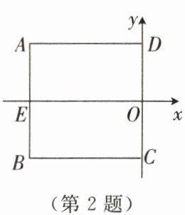 2. 如图,长方形 $ ABCD $ 的边 $ CD $ 在 $ y $ 轴上, $ O $ 为 $ CD $ 的中点。若 $ AB = 4 $, $ AB $ 交 $ x $ 轴于点 $ E(-5,0) $,则点 $ B $ 的坐标为(