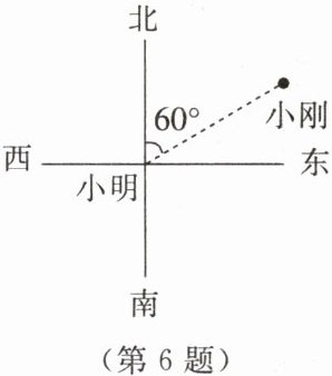 6. 如图,若小刚在小明的北偏东$60^{\circ}$方向$500m$处,则小明在小刚的