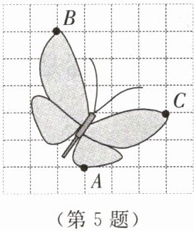 5. 如图,将一只蝴蝶标本放在适当的平面直角坐标系中。若翅膀两端$B$,$C$的坐标分别为$(-1,3)$,$(3,0)$,则蝴蝶翅膀上点$A$的坐标为