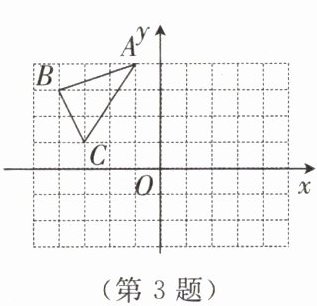 3. 如图,$\triangle ABC$的顶点都在正方形网格的格点上,点$A$的坐标为$(-1,4)$。若将$\triangle ABC$沿$y$轴翻折到第一象限,则点$C$的对应点$C'$的坐标是(
