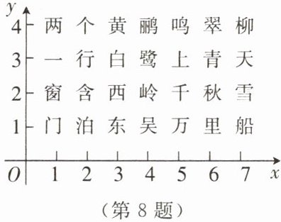 8. 如图,我们把杜甫的《绝句》整齐地排列在平面直角坐标系中。