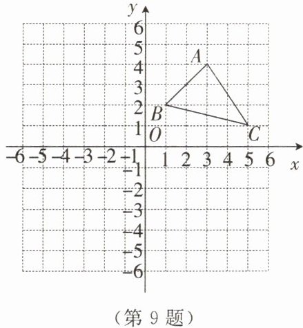9. 如图,在平面直角坐标系中,$\triangle ABC$的顶点都在格点上。