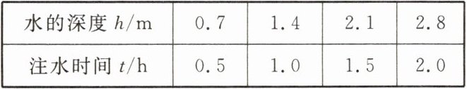 3. 现需向一个深度为$ 4.9 \mathrm{~m} $的空水池中注水,注水流量保持恒定,数据如下表所示。根据表中数据推算,注满水池需要