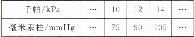 2. 血压的单位常用“千帕($ \mathrm{kPa} $)”和“毫米汞柱($ \mathrm{mmHg} $)”表示。根据表中数据,下列各组换算正确的是(