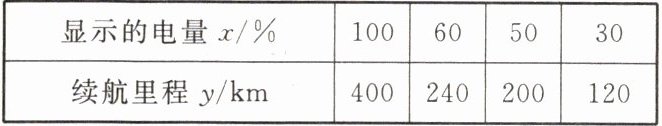 由y = 4x可得,剩余电量$x=\frac{y}{4}=\frac{160}{4}=40\%,$