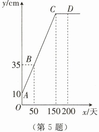 5. 生物活动小组的同学们观察某植物生长,得到该植物高度 $ y $(单位:$ cm $)与观察时间 $ x $(单位:天)的关系,画出如图所示的函数图象 $ (CD // x $ 轴)。