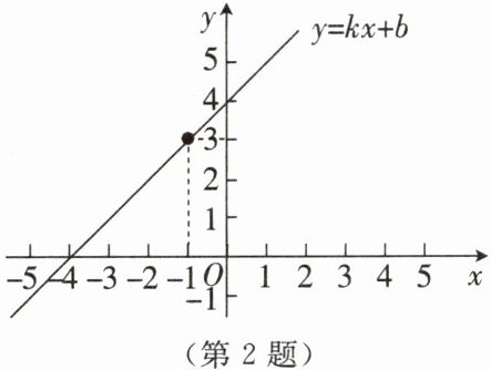 2. 如图,若直线 $ y = kx + b(k \neq 0) $ 经过点 $ (-1,3) $,则方程 $ kx + b = 3 $ 的解为(