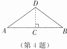 4. 如图,将一根长为 $8cm$ 的橡皮筋两端 $A$ 和 $B$ 固定在同一水平面上,然后把橡皮筋的中点 $C$ 垂直向上拉升 $3cm$ 到点 $D$ 的位置。橡皮筋被拉长了