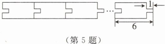 5. 我国古代建筑中广泛应用的榫卯结构通过凹凸结合实现木构件的紧密连接,如图所示。已知一个木构件的长度为$6$,其凸出部分的长为$1$。若将$x$个相同的木构件紧密拼接成一列,其总长度为$y$,则$y$关于$x$的关系式可表示为