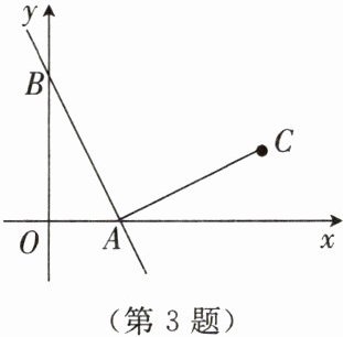3. 如图,函数 $ y = -2x + 2 $ 的图象分别与 $ x $ 轴、$ y $ 轴交于 $ A $,$ B $ 两点。若线段 $ AB $ 绕点 $ A $ 顺时针旋转 $ 90^{\circ} $ 得到线段 $ AC $,则点 $ C $ 的坐标为(