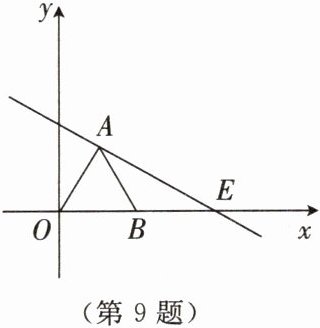 9. 如图,$ \triangle OAB $ 是边长为 $ 2 $ 的等边三角形,过点 $ A $ 的直线 $ y = -\dfrac{\sqrt{3}}{3}x + m $ 与 $ x $ 轴交于点 $ E $。
