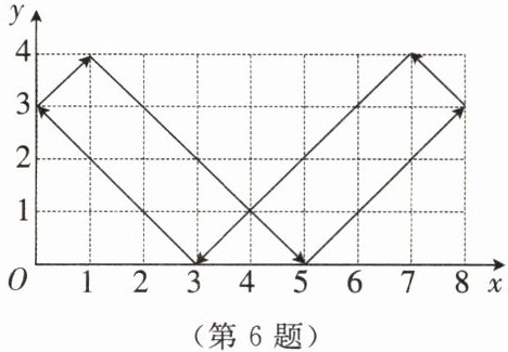 6. 一个小球起始时位于$(3,0)$处,按指定方向击出后,其运动轨迹如图所示。如果小球起始时位于$(1,0)$处,仍按原来方向击球,小球第一次碰到球桌边时,小球的位置是$(0,1)$,那么小球第$2024$次碰到球桌边时,小球的位置是(